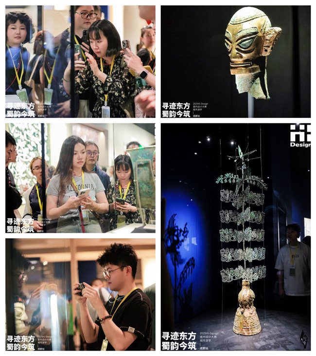古蜀文化,千百年来一直在其自身文化的基础上吸纳四周的文明,与其他地区的文化碰撞、交流,在融合中发展与进步。这样的文化特质,在三星堆博物馆展现得尤为直观。通过这座联通现代文明与古蜀文明的时光隧道,设计师们仿佛步入了一个神秘而瑰丽的世界,通天神树、青铜纵目面具、青铜鸟足神像……那些突破人类想象边界的青铜造物,似乎正在用超越时空的密码与设计师们展开对话。正如考古学家所言,“三星堆不是终点,而是重新认识中华文明的新起点。”,设计师们的参观之旅,不仅是对历史文化的致敬,更渗透着对现代生活美学的追求,希望在现代艺术、现代科技与中华传统文化之间找到那个最趋近于完美的结合点。