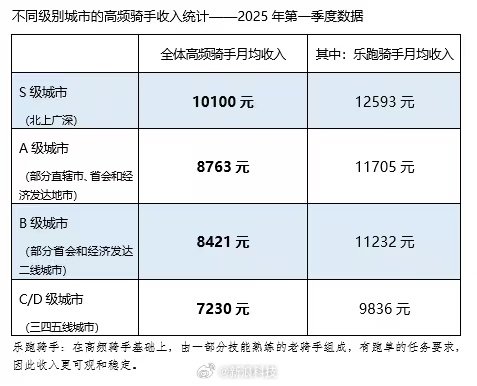 同时,美团披露2025年一季度骑手收入情况,全国范围内高频骑手的月均收入在7230元至10100元之间。
