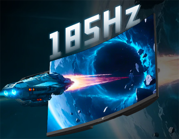 这款显示器配备一块31.5英寸HVA面板,2560x1440分辨率,185Hz超频(原生 180Hz)高刷,曲率 1500R。