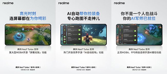 对于游戏爱好者而言,真我Neo7 Turbo 同样带来了惊喜。支持主流 MOBA、FPS 和自走棋手游 AI 辅助功能,实时攻略更智能;支持热门开放世界手游「AI 自动拾物」,让玩家专心跑图不走神;还支持大型 MOBA 手游「屏幕光效」功能,为玩家的高光时刻增添仪式感。
