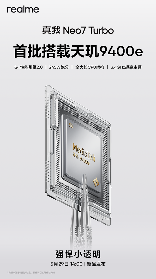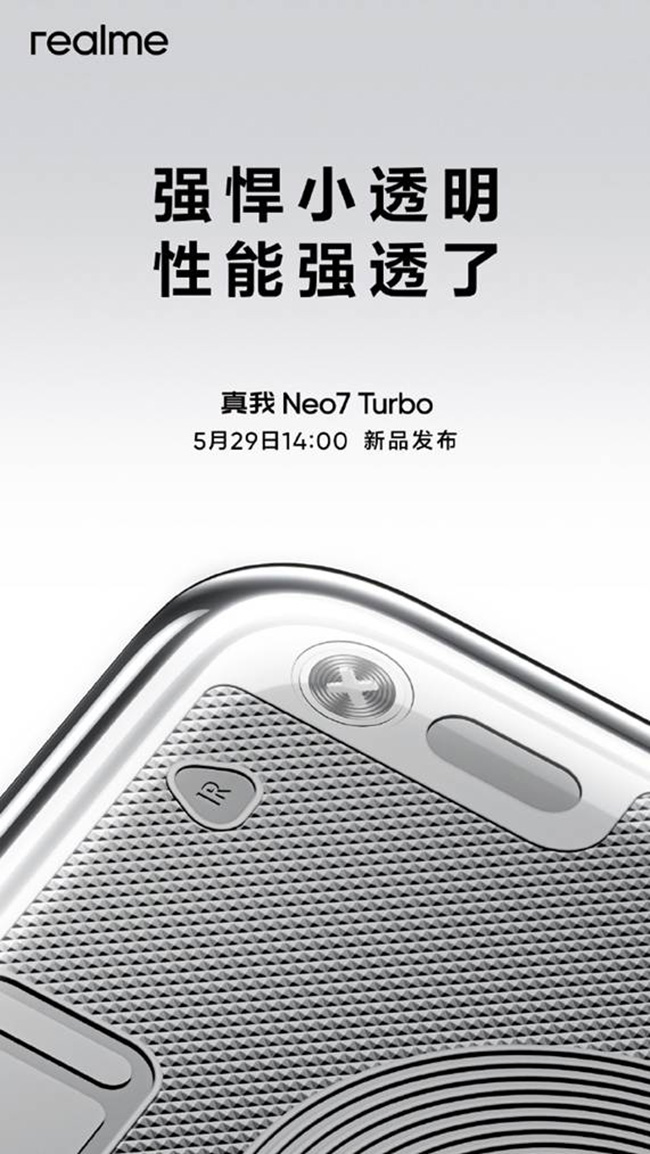 距离 5月29日14:00 的发布会越来越近,现在网上有曝出2199元起,如果价格“透明”,可以说让真我Neo7 Turbo竞争力进一步提升,在高成本的透明外观设计、天玑9400e的旗舰性能以及大容量电池和快充加持下,相信这款 “强悍小透明” 必将在智能手机市场中大放异彩,为消费者带来全新的选择。让我们一起坐等发布会,见证真我Neo7 Turbo的正式登场!