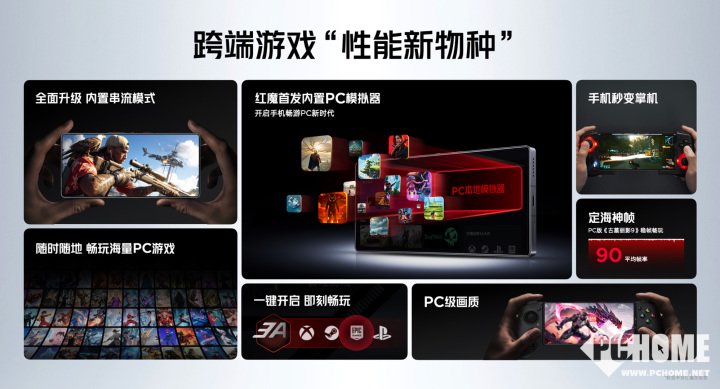 红魔10S Pro系列不仅在手机性能配置上尽显强悍,还实现了超越传统手机的功能突破,实现与PC游戏领域的跨越。通过自研转译引擎+跨端转译技术,打通技术壁垒,实现一机双端。整机借助红芯R3 Pro芯片增强画质,支持PC游戏一键直连,键鼠、手柄等外设即插即用,还有显示器投屏以及串流直连功能,深度集成PC游戏生态,首次实现手机端无缝畅玩PC游戏,开启移动端跨端游戏新纪元。