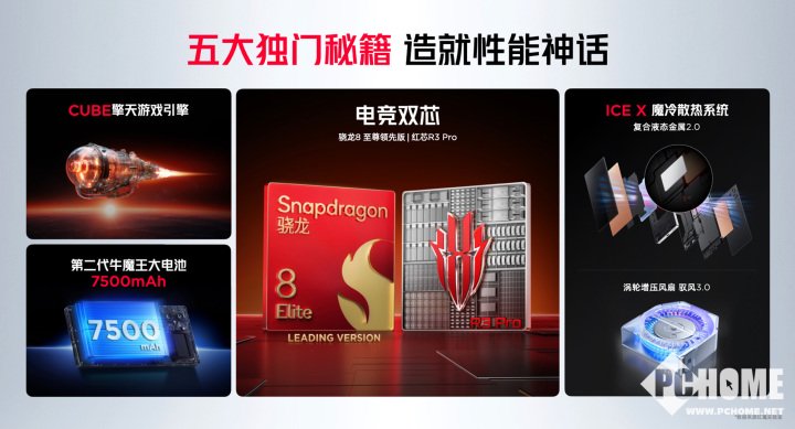 在狂暴性能稳定输出的背后,都离不开强劲散热系统的支撑。红魔10S Pro系列搭载了行业领先的ICE魔冷散热系统,采用液态金属2.0+风冷散热的组合方式,将液态金属直接贴合在CPU 热源上方,导热效率较前代提升250%,液态金属导热面积提升30%,配合高导热合金材质保障安全性,使CPU核心温度再降5℃,为强悍性能输出提供坚实保障,再次定义了电竞旗舰的散热标杆。