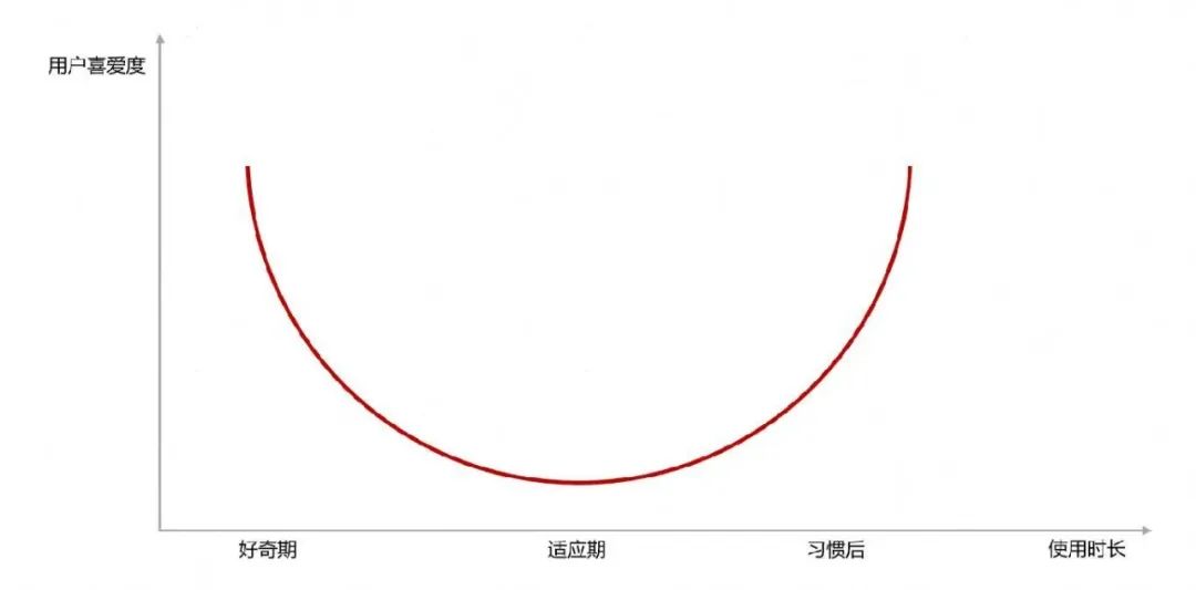 在体验创新领域,存在着一个「微笑曲线」理论能够阐释用户黏性的变化。