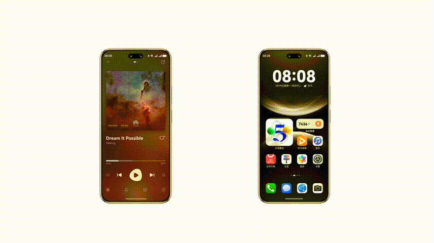 例如鸿蒙版抖音,不仅在状态栏上做了新的适配,让用户「刷抖音」的体验更具沉浸感,同时还接入了媒体播控功能。用户可以在系统的控制中心、后台、锁屏甚至息屏页进行播放和暂停,让过去的「刷抖音」成为「听抖音」,从而在上下班地铁出行、中午休息散步时享受鸿蒙版抖音的「播客式体验」。