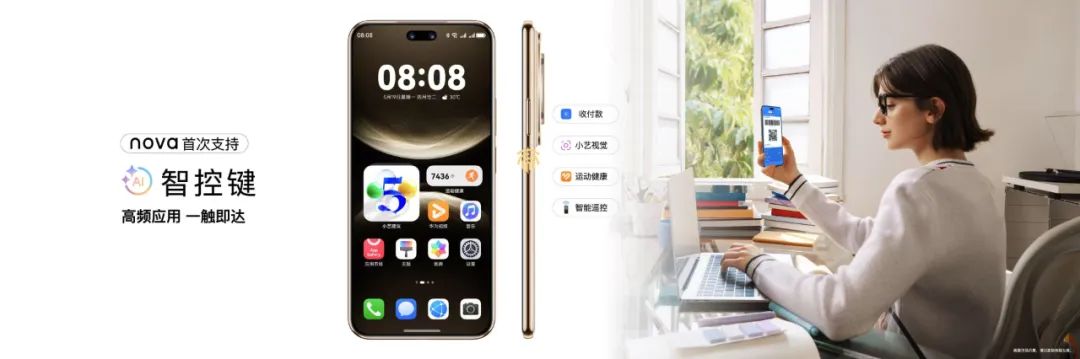 这种全新的人机交互范式,提倡的更是一种简洁。在图形用户界面愈发臃肿的时代,搭载鸿蒙5的nova 14系列还支持了智控键,通过高频功能的快速触达,降低用户的操作成本。例如当你在购物买单时,锁屏键连按2次可调出支付宝的收付款码功能。