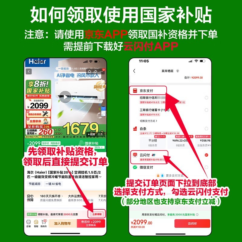 Leader海尔智家空调1匹挂机一级能效变频京东价1699元实付1135元