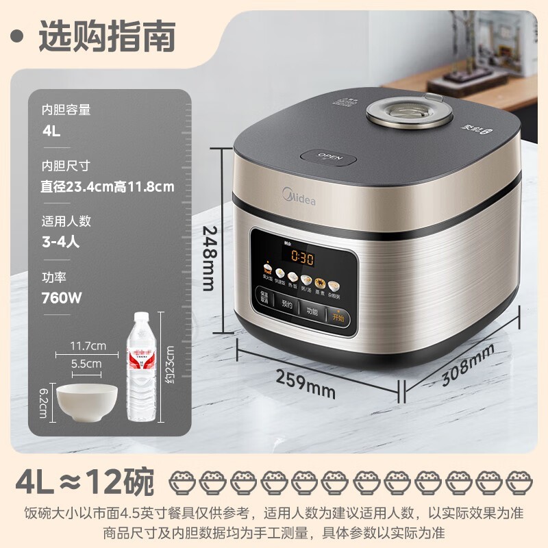 美的RE417电饭煲4L,京东活动价低至152元