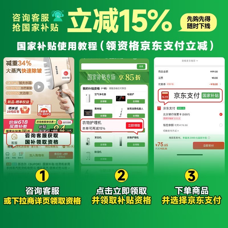 苏泊尔ESP - 307B蒸汽电熨斗京东热销,到手71.1元
