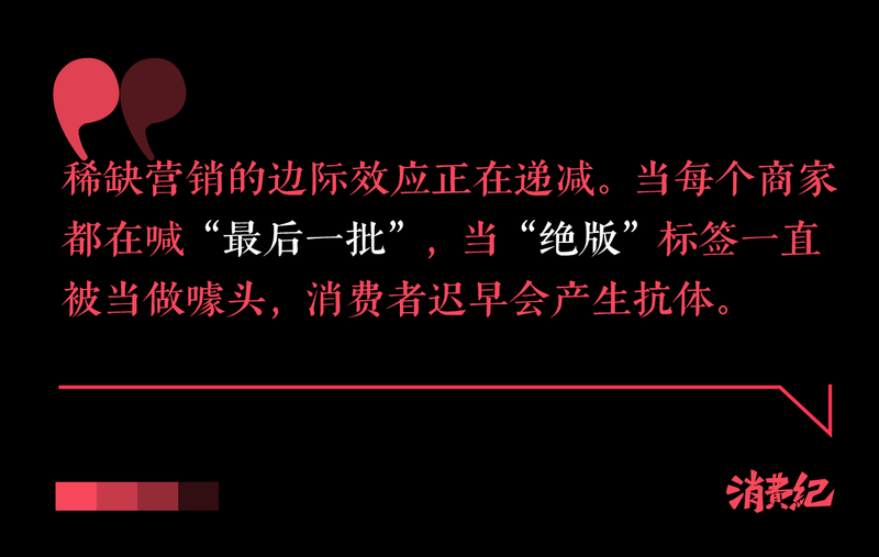 事实上,撕拉片的未来走向其实受多重因素牵制。首先,稀缺营销的边际效应正在递减。当每个商家都在喊“最后一批”,当“绝版”标签一直被当做噱头,消费者迟早会产生抗体。就像游戏皮肤限定款频繁搞返厂,最终让“限定”变得“烂大街”。