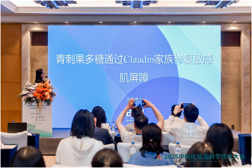 会议现场,贝泰妮研究院王博博士分享了《青刺果多糖通过Claudin家族修复敏感肌屏障》相关内容,阐述了贝泰妮明星植物从青刺果油到青刺果多糖的边阶研究,解析了青刺果多糖(青刺果PRO MAX)能够直击敏感基因源头,有效增强CLDN-5的基因表达,目前,集团已将青刺果PRO MAX应用于第二代薇诺娜特护霜产品中。