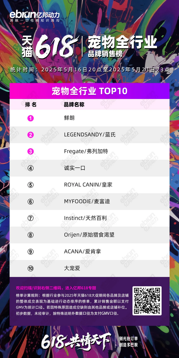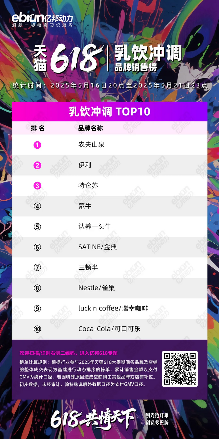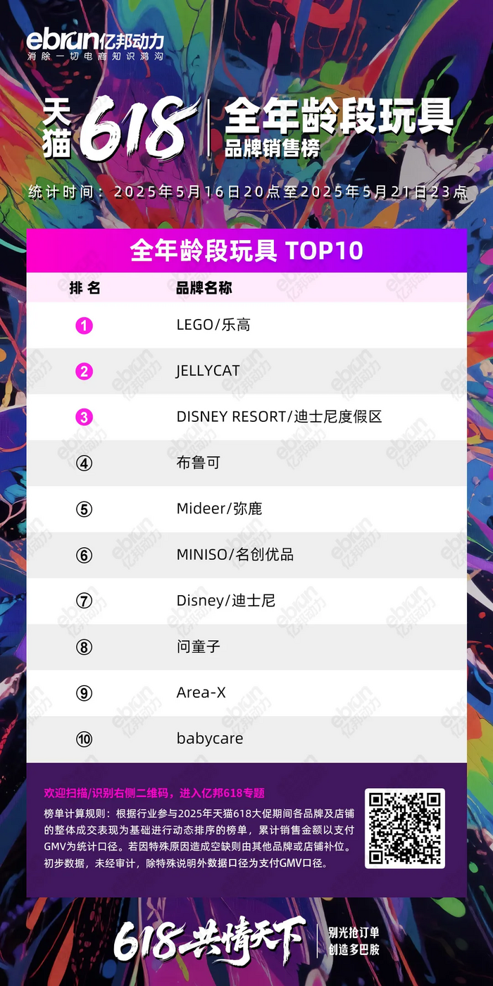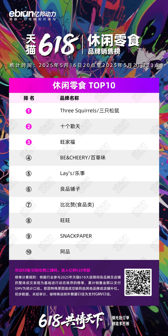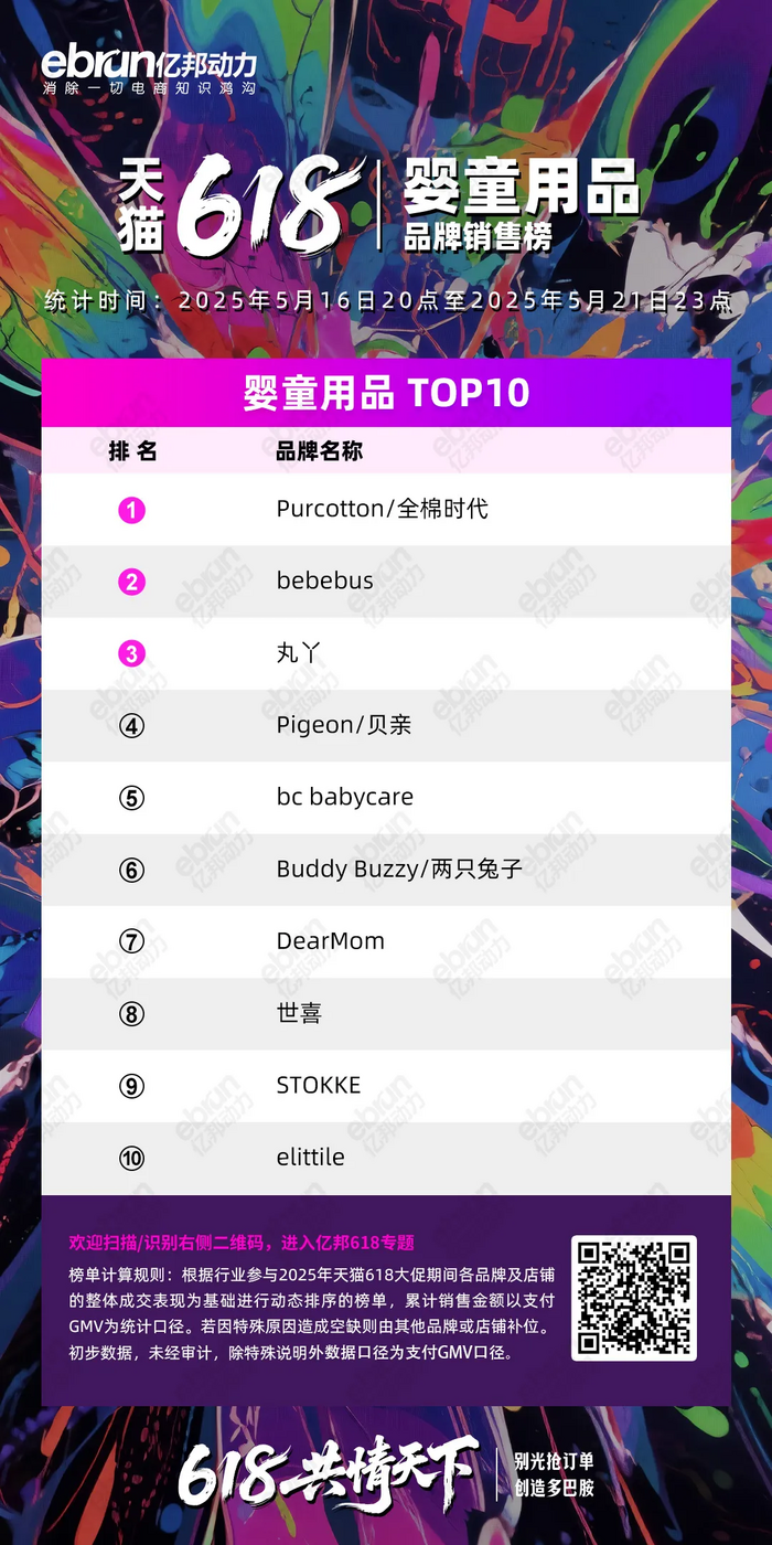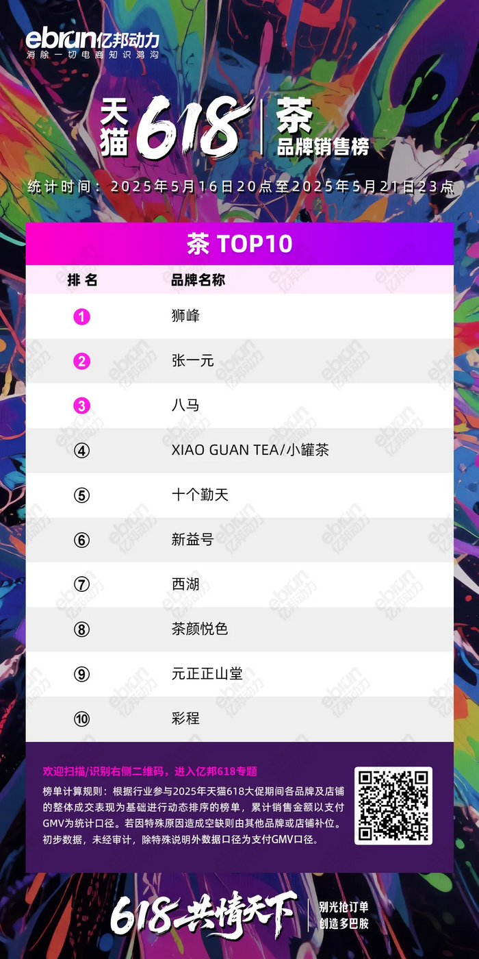 根据行业参与2025年天猫618大促期间各品牌及店铺的整体成交表现为基础进行动态排序的榜单,累计销售金额以支付GMV为统计口径。若因特殊原因造成空缺则由其他品牌或店铺补位。初步数据,未经审计,除特殊说明外数据口径为支付GMV口径。