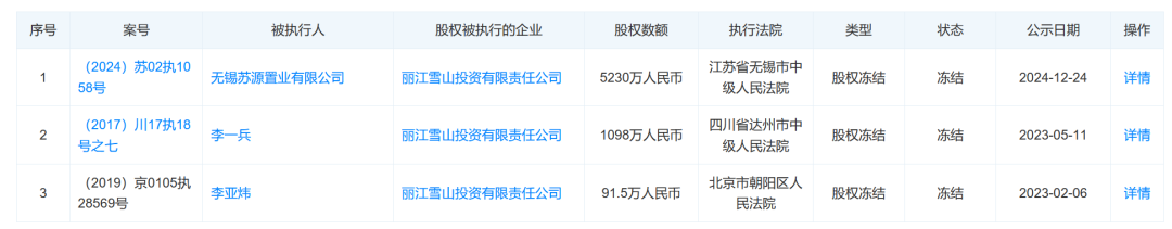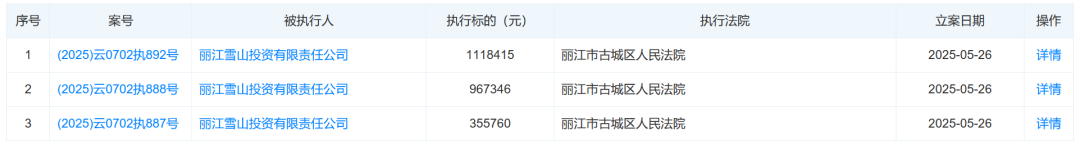 5月27日,公开资料显示,近日,丽江雪山投资有限责任公司新增3条被执行人信息,被执行总金额约244万元,执行法院均为丽江市古城区人民法院。