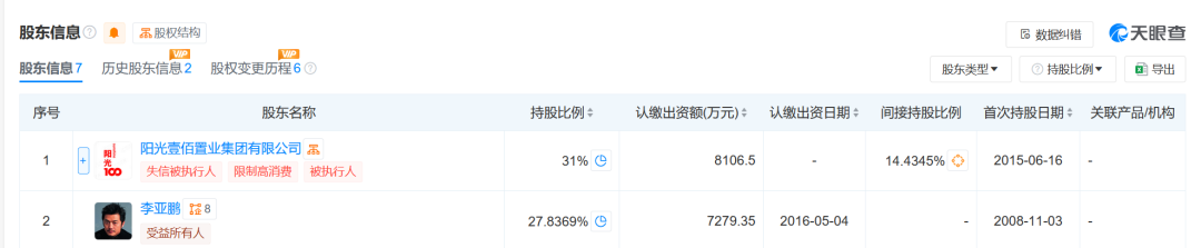 丽江雪山投资有限责任公司成立于2008年11月,法定代表人为李国栋,注册资本约2.6亿人民币,由阳光壹佰置业集团有限公司、李亚鹏等共同持股,其中,李亚鹏持股约27.8%。