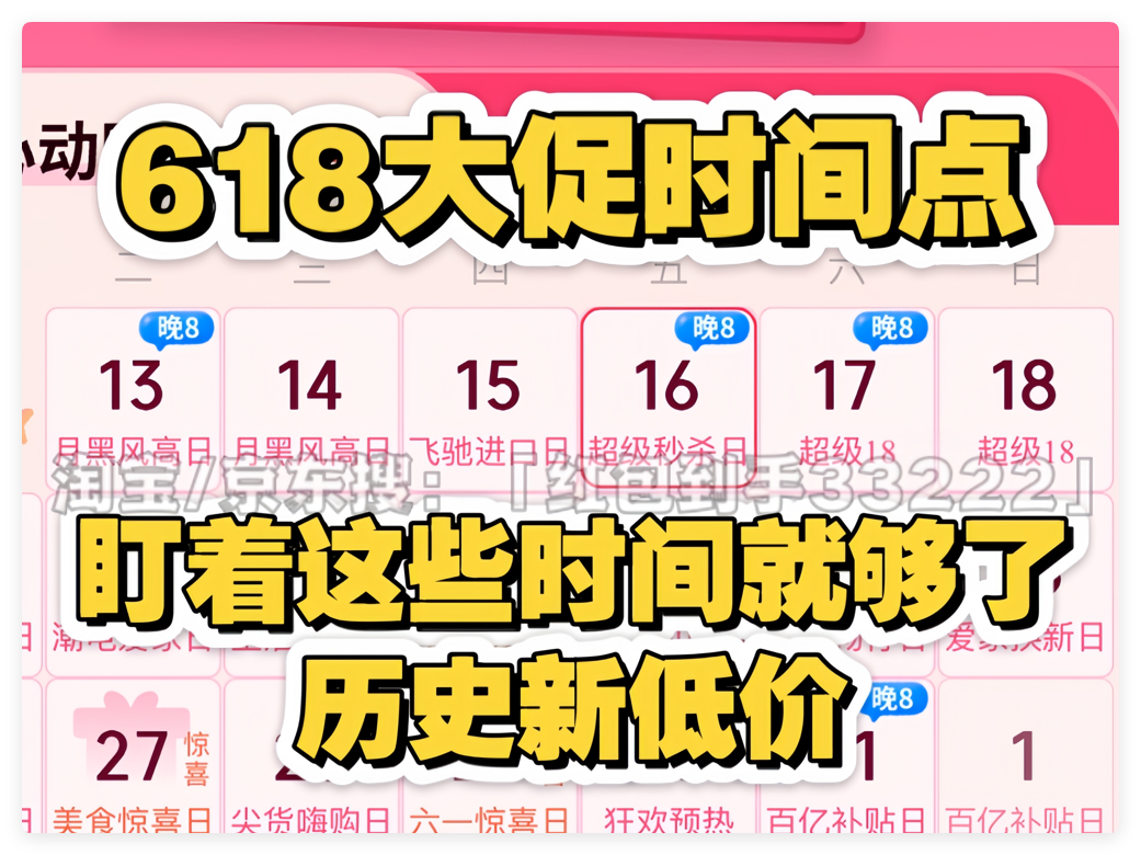 根据京东官方活动规则,2025年京东618分为四个阶段:预热期(5月13日-5月28日)、开门红(5月31日-6月3日)、品类专场(6月4日-6月15日)、高潮期(6月16日-6月18日)。其中,5月31日晚8点和6月18日是两大关键时间点:
