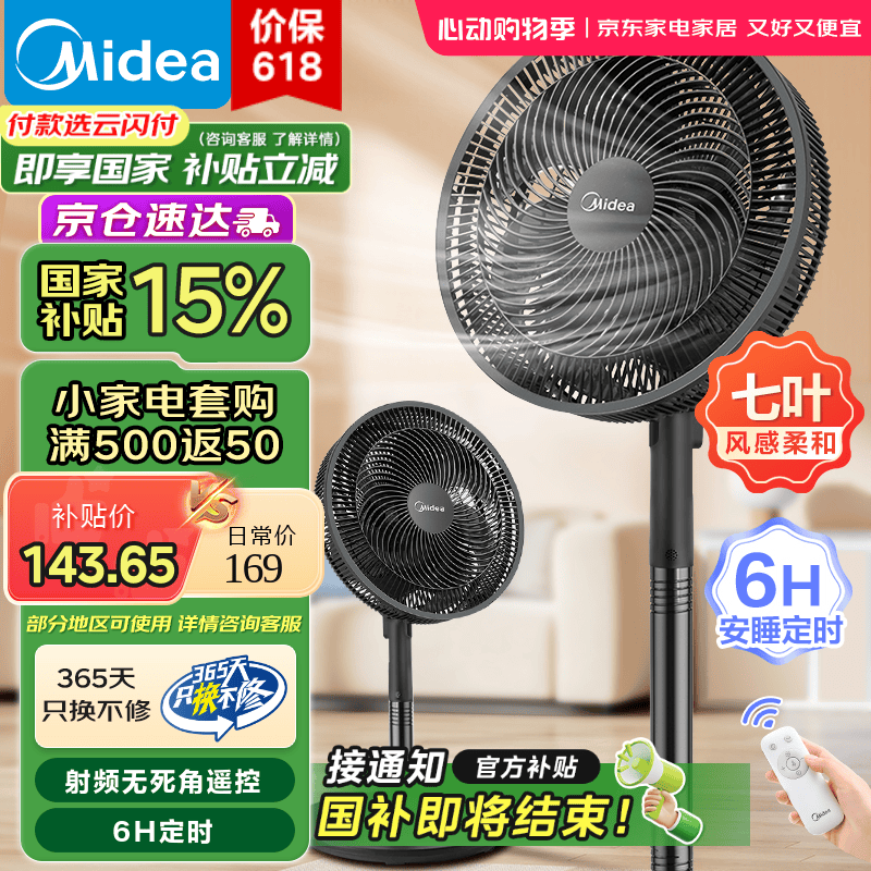 美的电风扇SAH30ADR七叶设计大风力落地扇
