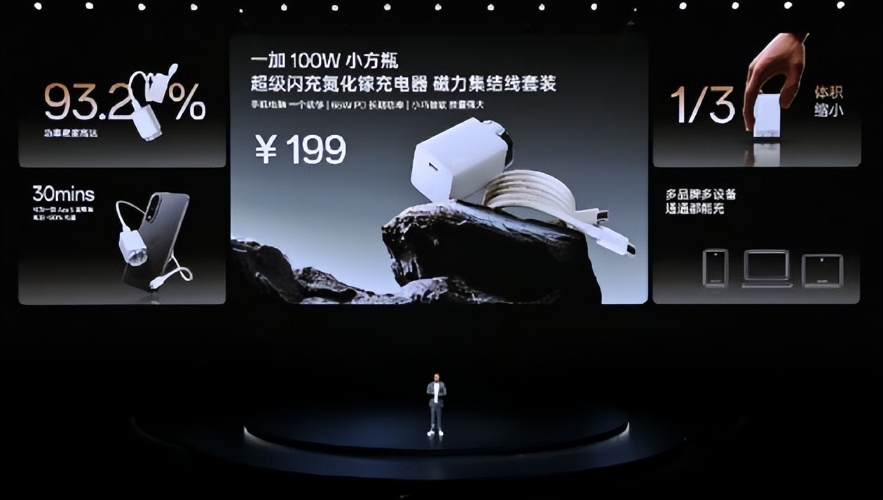 配件方面,一加 100W 小方瓶超级闪充氮化镓充电器磁力集结线套装售价 199 元,这款充电器不仅支持 100W 超级闪充,更具备 65W PD 长期功率输出,小巧精致,能够满足手机和电脑等设备的充电需求。