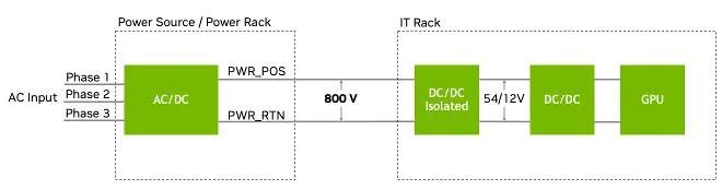 Nvidia 的提议是在数据中心周边将 13.8kVac 电网功率直接转换为 800Vdc。