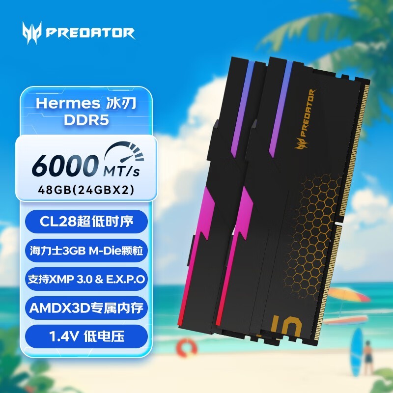 宏碁掠夺者DDR5 48G内存京东自营优惠价1049元