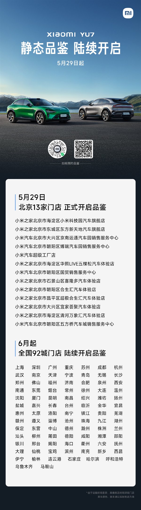 ② 6月起,YU7展车将陆续覆盖全国92城。