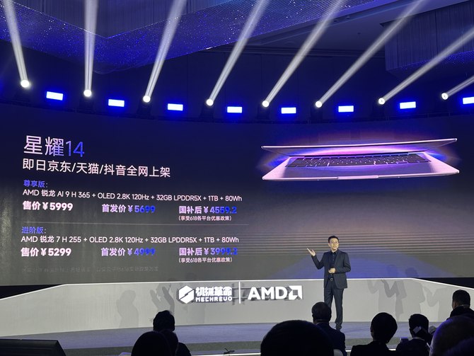 图:机械革命创始人潘春节先生AMD 高级副总裁、大中华区总裁潘晓明先生亲临现场,揭秘技术共创成果:“早在一年前,双方就围绕产品定位等方面展开深入沟通。在研发过程中,我们共同聚焦产品稳定性、性能表现、续航能力以及用户使用体验,力求打造一款综合实力出色的轻薄本。此次搭载了AMD最新锐龙 AI 300系列处理器的星耀系列新品,正是双方优势互补的成果,既融合技术与美学,也承载对超高品质的不懈追求,希望为用户带来优质体验。”