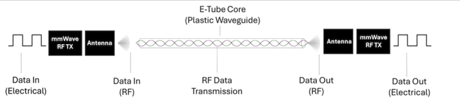 所有这一切都让超大规模计算公司需要一种解决方案,该方案能够克服铜和光技术相关的限制,同时保持对大规模部署的成本效益。现在,请看第三种选择:e-Tube,这是一种可扩展的多太比特互连平台,使用射频数据传输通过塑料介电波导。