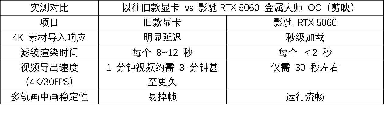 当“剪辑”成为一种生活方式,当Vlog、自媒体成为新的表达语言,我们对显卡的期待,也早已不只是“玩得爽”,而是“剪得快,导得稳,渲得美”。而现在,搭载NVIDIA最新架构的影驰50系显卡,正悄然成为视频创作者的新宠。无论你是PR老手,还是剪映Pro新手,影驰都能帮你从容应对剪辑高峰时刻。
