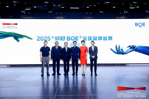 5月26日,BOE(京东方)年度标杆性线下品牌营销活动“你好BOE”2025启动仪式在珠海横琴文化艺术中心举办。作为2025年“你好BOE”首站活动,BOE(京东方)助力首届“横琴-澳门国际数字艺术博览会”,通过超高清显示技术及数字化解决方案为展会三大展区的10余个数字艺术展项提供高端显示技术解决方案,打造沉浸式科技艺术现场,生动传递“以创新科技赋能数字艺术”理念。历经四年迭代,“你好BOE”从最初展现BOE(京东方)自身领先技术、与合作伙伴构建联合生态,到如今更加关注创新技术与应用场景的深度融合,该品牌推广IP已升维至全新的3.0时代。活动现场,此次博览会的主办方南光(集团)有限公司副总经理宋晓冬,阳光媒体集团董事长杨澜,亚洲和平慈善基金会董事会主席李伟杰,参展艺术家代表中央美术学院设计学院艺术与科技方向教授、博士生导师、某集体ART+TECH创始人费俊,京东方科技集团副总裁、MLED业务CEO刘毅,艺云科技副总裁、华南区域总经理刘华等众多嘉宾领导出席“你好BOE”2025年启动仪式,开启BOE(京东方)品牌生态合作新篇章。