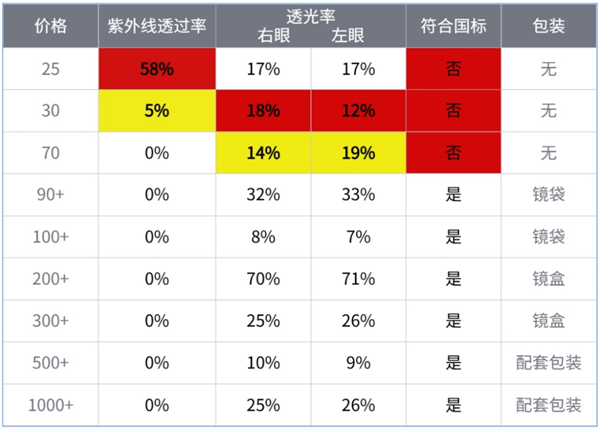 通过对三款低价无吊牌太阳镜、六款正规渠道太阳镜进行一系列检测后我们发现,它们的防护能力的确存在一定差异,某些劣质太阳镜甚至可能让你的眼睛受到更多紫外线伤害……