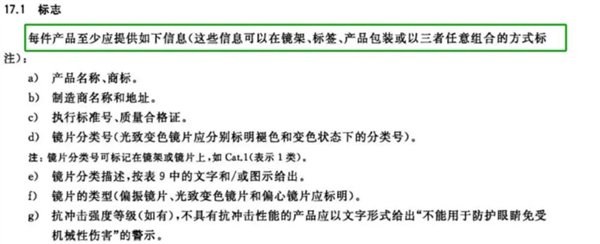 那就是该产品是否符合新国标 GB 39552.1-2020,只要是 2021 年 12 月之后生产的合格太阳镜,均需要满足此国标,且国标要求需要把产品的相关信息明确标注,以便消费者查看。