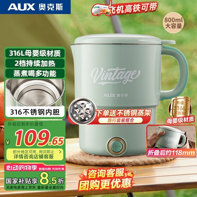奥克斯便携烧水壶限时特惠83.71元