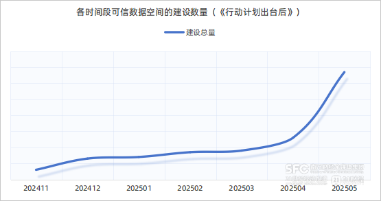 南财数据团队梳理分析发现,在2024年11月国家层面首次针对可信数据空间进行系统性布局,出台《可信数据空间发展行动计划(2024—2028年)》(以下简称《行动计划》)后,可信数据空间建设数量紧接着在12月出现了突破增长。