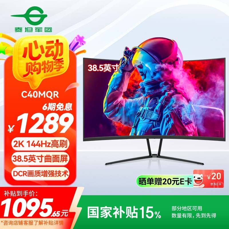 泰坦军团38.5英寸曲面显示器限时特惠1001元