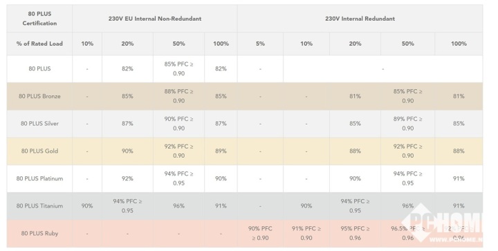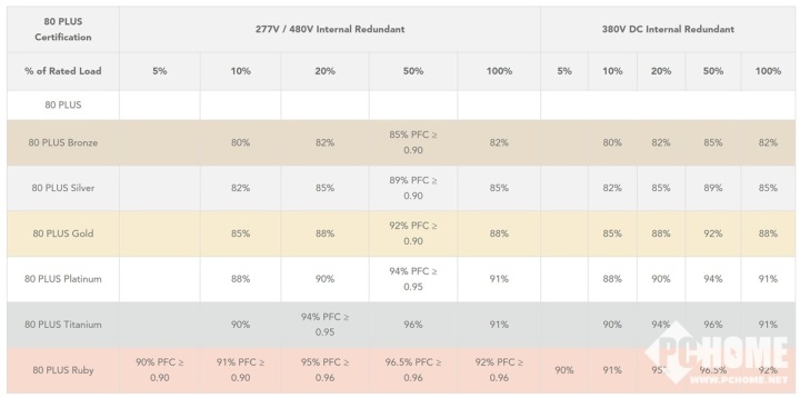 80PLUS认证就悄悄新增了“Ruby(红宝石)”等级,电源须在50%负载下达到至少96.5%的转换效率。
