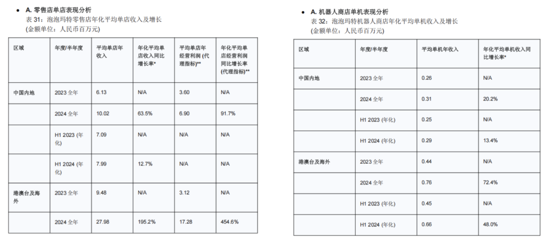 3.请包含表格反映同样期间的国内和国外的线下零售门店与机器人商店的单店模型和同店增长情况,门店数量用全年平均。”