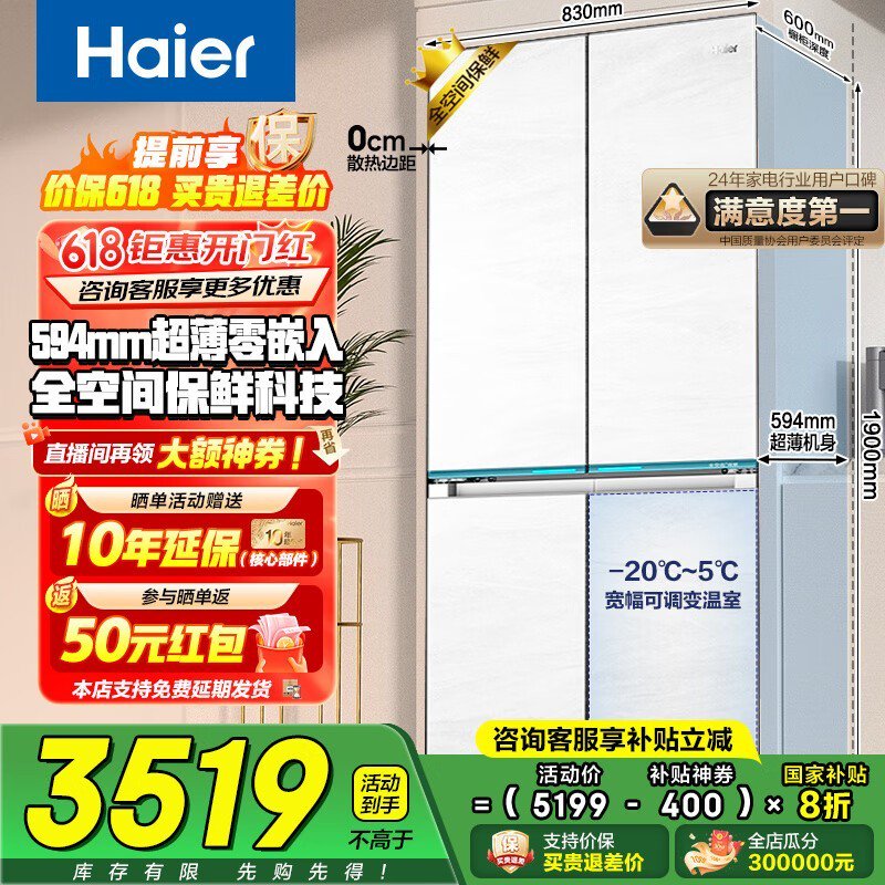 海尔Haier白巧475L冰箱优惠,到手价2869元