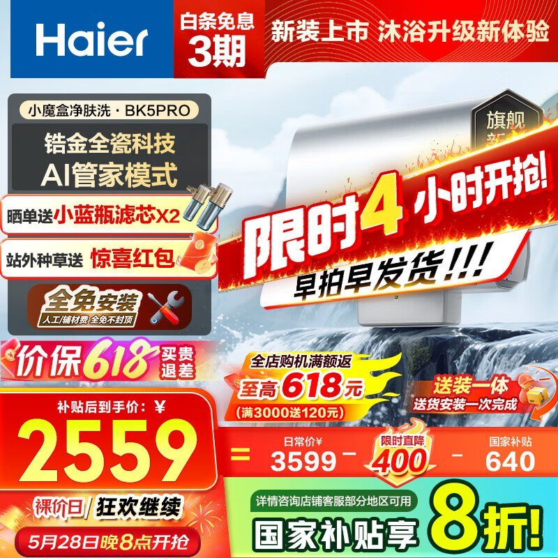 海尔60升电热水器EC6003HD-BK5PROKAU1限时特惠价2173元