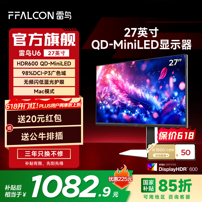 雷鸟U6 R27U61办公显示器优惠后仅需1045元