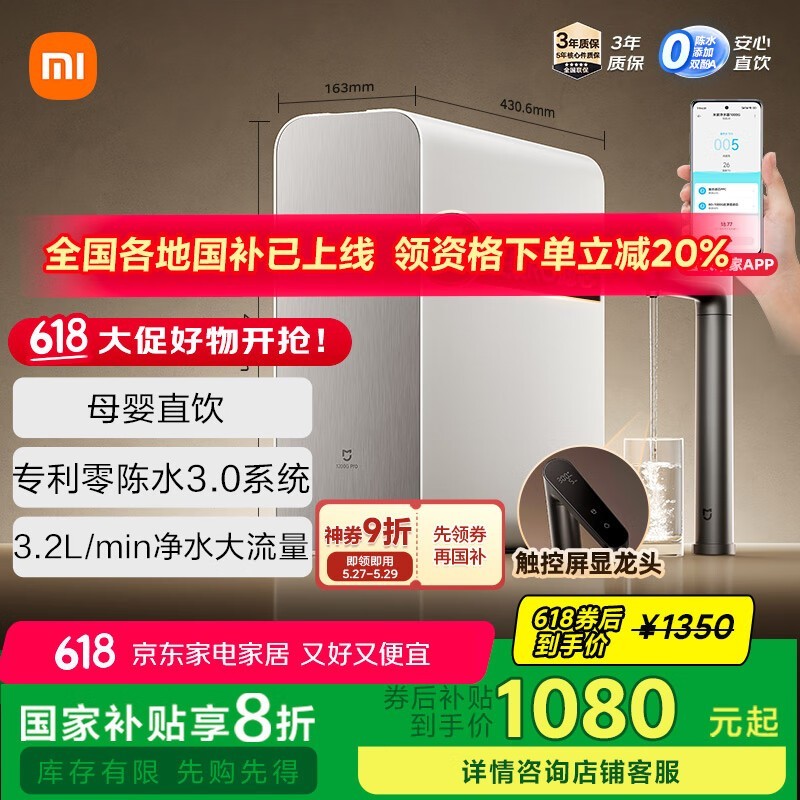 米家1200G Pro净水器京东优惠后780元