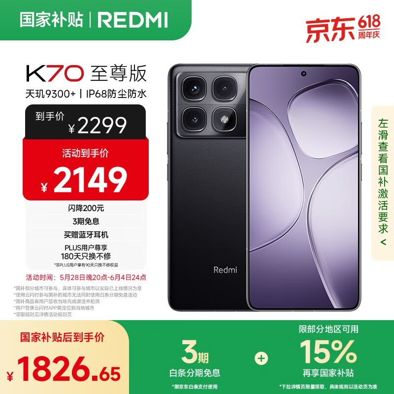 红米K70至尊版5G手机京东优惠价低至1808元