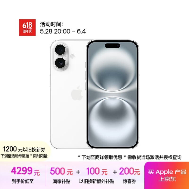 iPhone 16 128GB白色京东优惠低至4254元