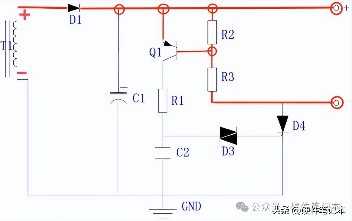另外,任何电路离不开电容、电感,得电时有一个电流回路进行充电,放电时像是一个个小的电池也需要各自的放电电流回路,这样才能把残留的电荷放掉,才不会造成后续的安全隐患。总之,弄懂电流回路很重要,看不懂的电路往往是由于没搞清电流回路造成的。好了,看一个简单的电路吧。