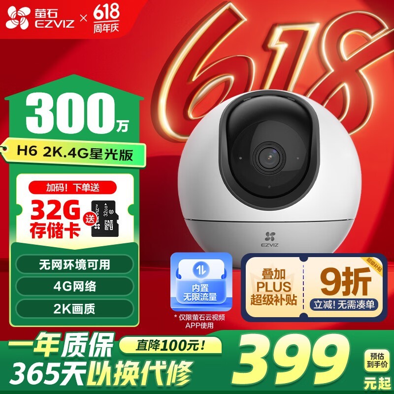 萤石H6终身流量款家用摄像头限时优惠价300元