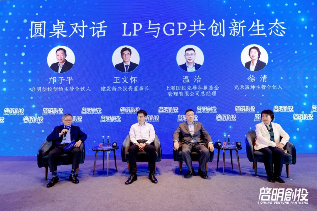 在《LP与GP共创新生态》圆桌对话环节,邝子平担任主持,与建发新兴投资董事长王文怀,上海国投先导私募基金管理有限公司总经理温治,元禾辰坤主管合伙人徐清,围绕当前市场情况下,人民币基金的理想状态、侧重指标,以及对GP新尝试的观察判断等展开分享。
