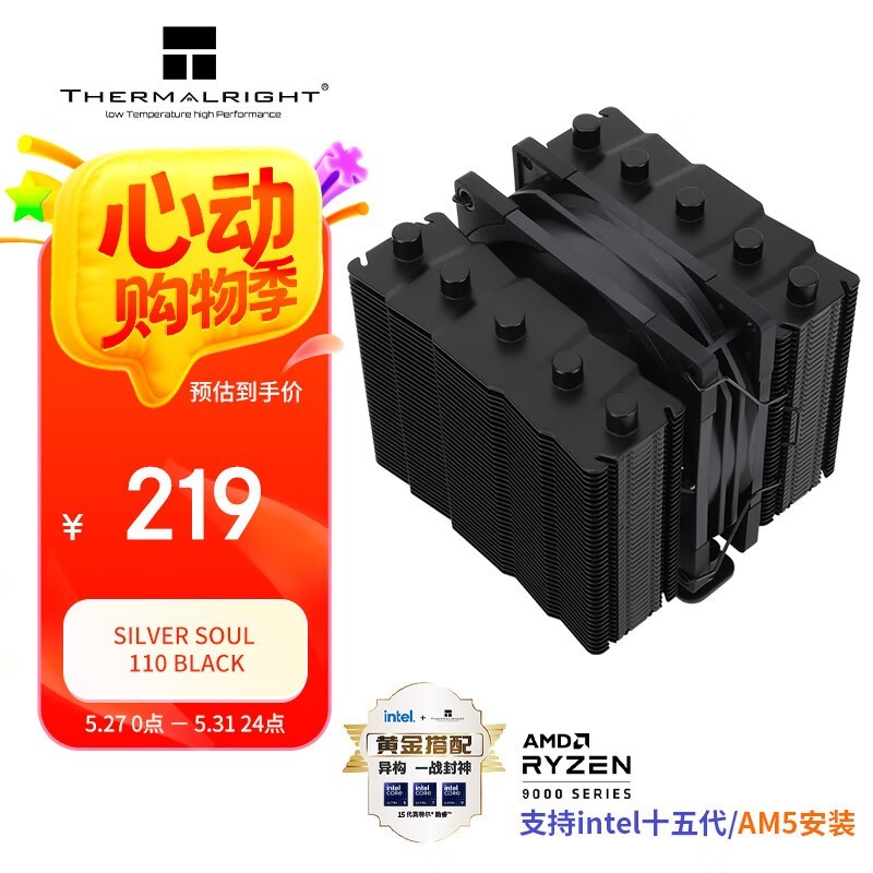 利民SS110 BLACK黑魂风冷CPU散热器限时直降22元