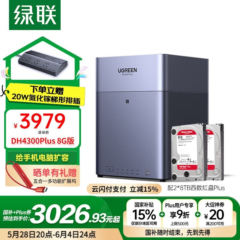 绿联私有云DH4300Plus京东优惠,低至2899元