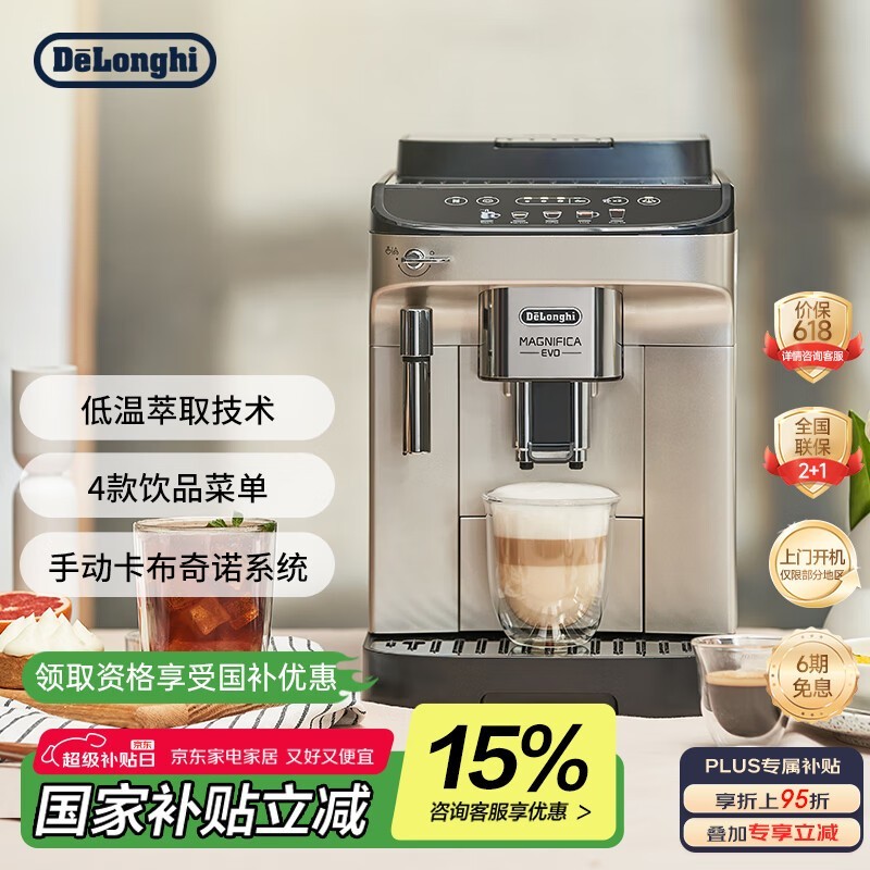 德龙 E Plus 全自动咖啡机银色限时特惠2154元