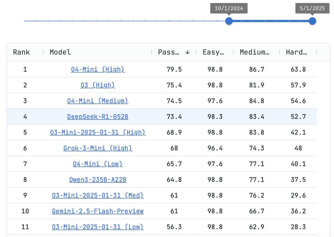 DeepSeek R1 发布以来,大模型领域的格局已经发生了变化。原版 R1 的成绩如今已不再领先,R1-0528 的出现修正了结果。
