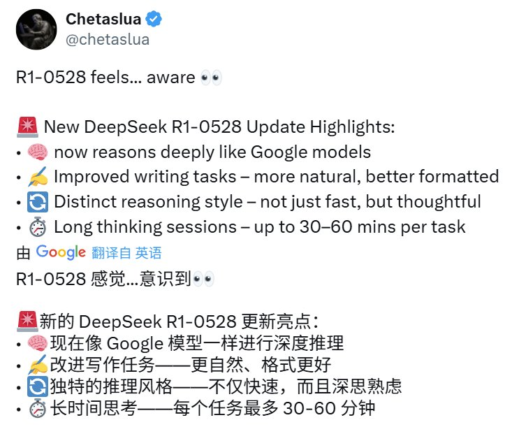 虽然 DeepSeek-R1-0528 才刚出来不久,但已经有不少网友分享了自己的实测结果。