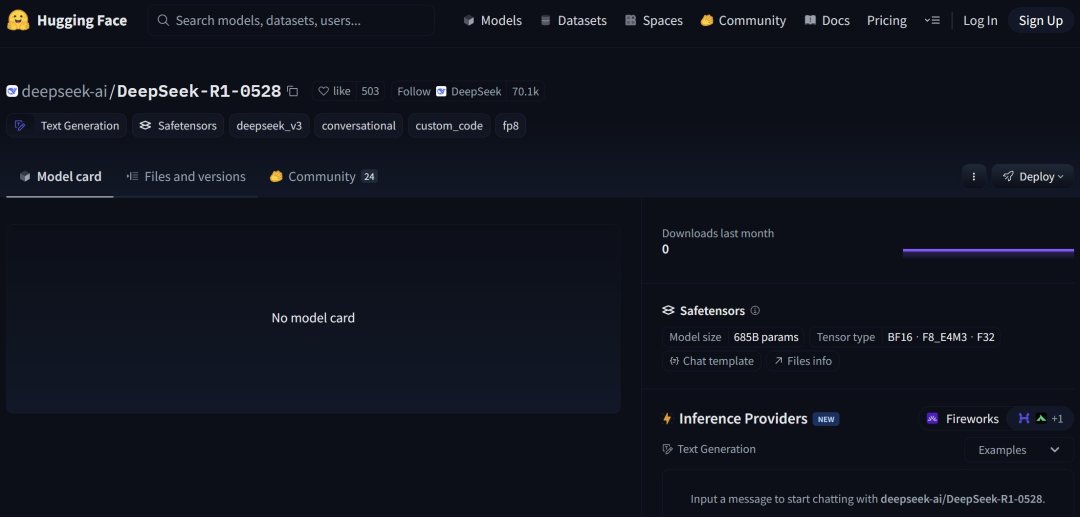 HuggingFace 链接:https://huggingface.co/deepseek-ai/DeepSeek-R1-0528